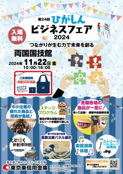 例年両国国技館で開催しているひがしんビジネスフェアは、当金庫のお取引先をはじめ、全国から優れた商品や技術が集結するイベントで、今年は11月22日(金)に開催いたします。これに先駆け本日開設した「第24回ひがしんビジネスフェア2024 WEBサイト」では、開催当日に両国国技館に出展する企業の詳細がご覧いただけます。また、当日に開催するイベントの情報などもご確認いただけます。